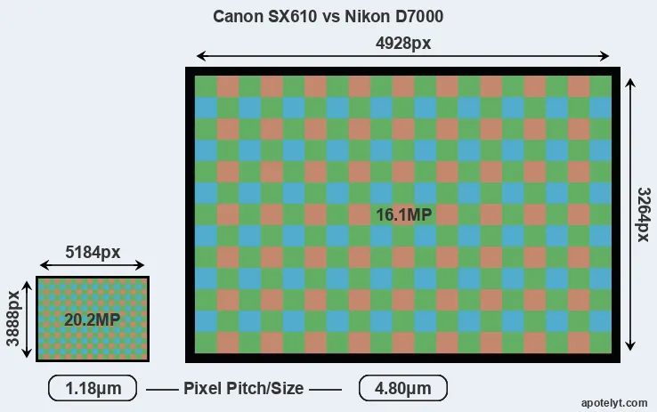 | Sensor Specs | Canon SX610 | Nikon D7000 |