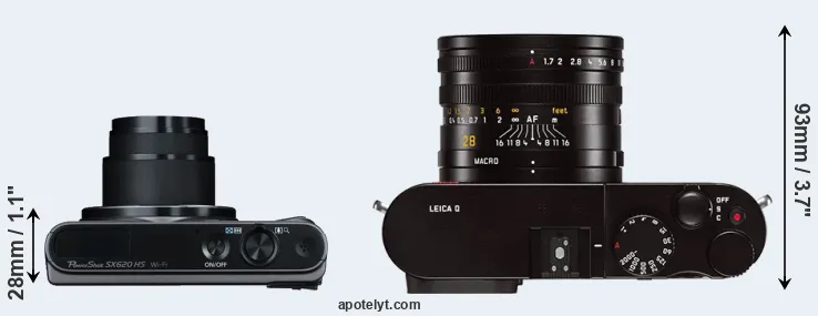 Going beyond this snapshot of core features and characteristics, what are the differences between the Canon PowerShot SX620 HS and the Leica Q (Typ 116)? Which one should you buy? Read on to find out how these two cameras compare with respect to their body size, their imaging sensors, their shooting features, their input-output connections, and their reception by expert reviewers.
