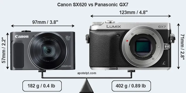 | Body Specs | Canon SX620 | Panasonic GX7 |