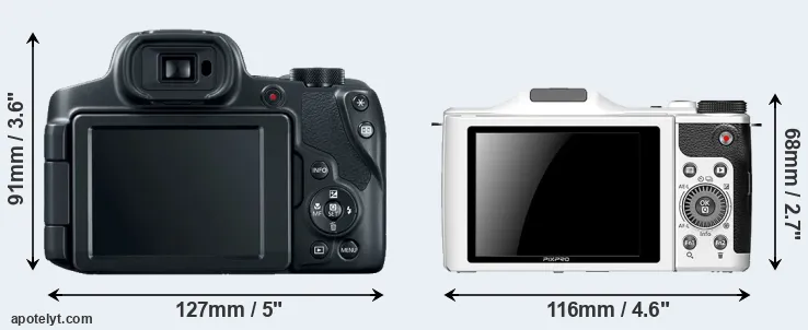 | 1. | Canon SX70 | 127 mm | 91 mm | 117 mm | 608 g | 325 | n | Sep 2018 | US$ 549 | amazon.com | |