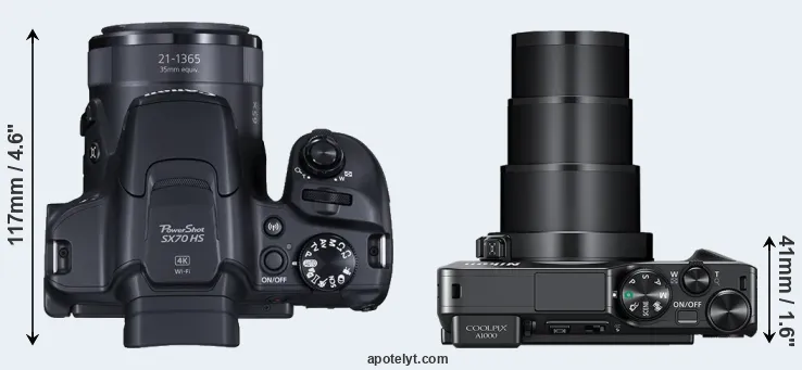 | Body Specs | Canon SX70 | Nikon A1000 |