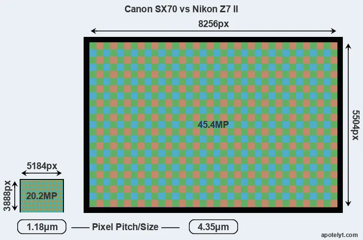 | Sensor Specs | Canon SX70 | Nikon Z7 II |