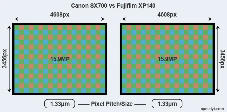 | Sensor Specs | Canon SX700 | Fujifilm XP140 |