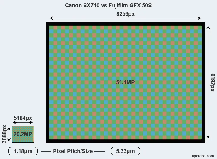 | Sensor Specs | Canon SX710 | Fujifilm GFX 50S |