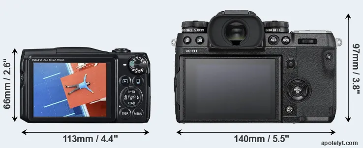 The above size and weight comparisons are to some extent incomplete and possibly misleading, as the SX710 has a lens built in, whereas the X-H1 is an interchangeable lens camera that requires a separate lens. Attaching the latter will add extra weight and bulk to the setup. You can compare the optics available for the X-H1 and their specifications in the Fujinon X Lens Catalog.