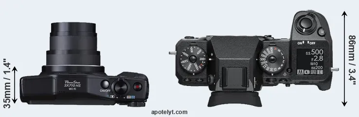 | Body Specs | Canon SX710 | Fujifilm X-H1 |