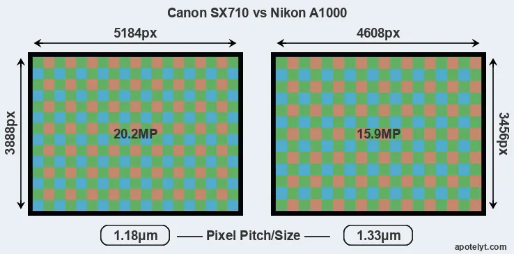 | Sensor Specs | Canon SX710 | Nikon A1000 |