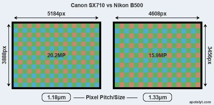 | Sensor Specs | Canon SX710 | Nikon B500 |