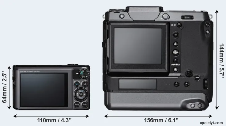 | Body Specs | Canon SX720 | Fujifilm GFX 100 |