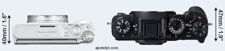 The above size and weight comparisons are to some extent incomplete and possibly misleading, as the SX730 has a lens built in, whereas the X-T1 is an interchangeable lens camera that requires a separate lens. Attaching the latter will add extra weight and bulk to the setup. You can compare the optics available for the X-T1 and their specifications in the Fujinon X Lens Catalog.