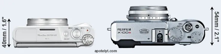 Going beyond this snapshot of core features and characteristics, what are the differences between the Canon PowerShot SX730 HS and the Fujifilm X100S? Which one should you buy? Read on to find out how these two cameras compare with respect to their body size, their imaging sensors, their shooting features, their input-output connections, and their reception by expert reviewers.