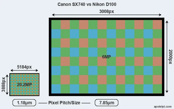 | Sensor Specs | Canon SX740 | Nikon D100 |