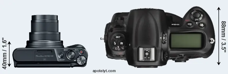 | Body Specs | Canon SX740 | Nikon D3X |