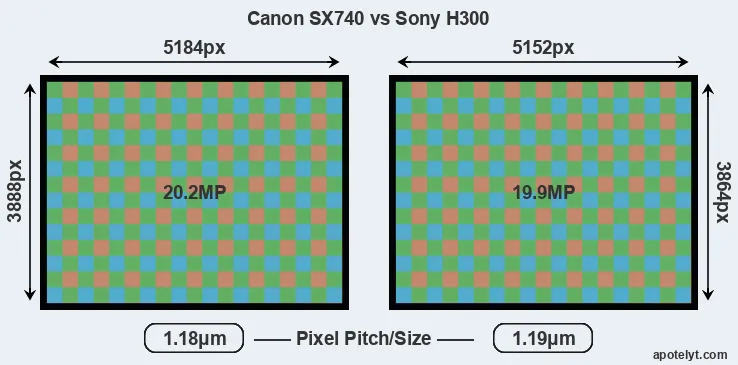 | Sensor Specs | Canon SX740 | Sony H300 |