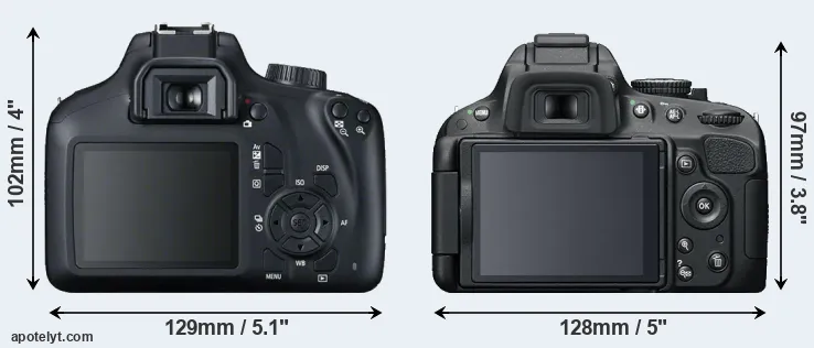 Going beyond this snapshot of core features and characteristics, what are the differences between the Canon EOS Rebel T100 and the Nikon D5100? Which one should you buy? Read on to find out how these two cameras compare with respect to their body size, their imaging sensors, their shooting features, their input-output connections, and their reception by expert reviewers.