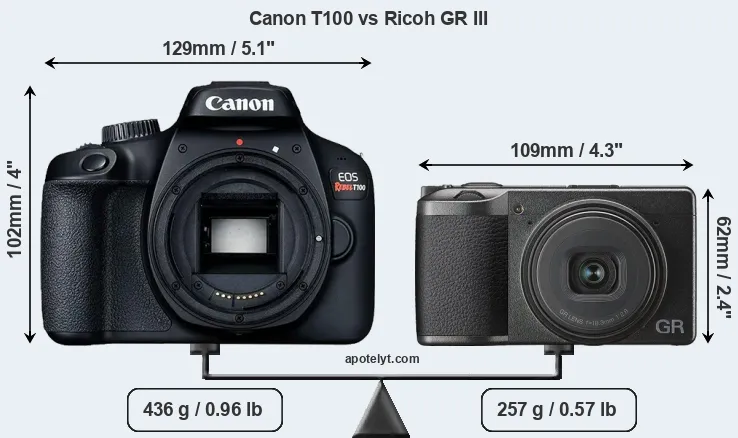 | Body Specs | Canon T100 | Ricoh GR III |