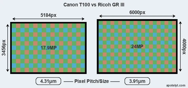 | Sensor Specs | Canon T100 | Ricoh GR III |