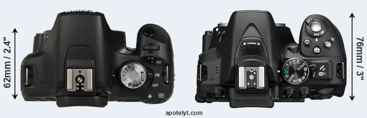 | 13. | Nikon D3200 | 125 mm | 96 mm | 77 mm | 505 g | 540 | n | Apr 2012 | US$ 599 | ebay.com | |