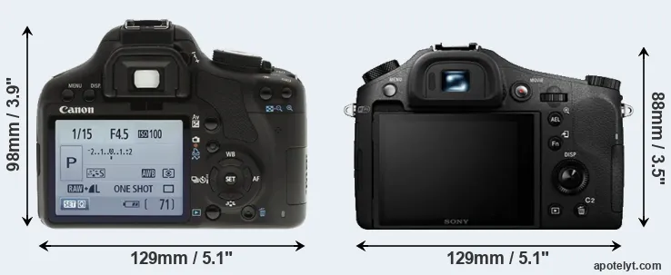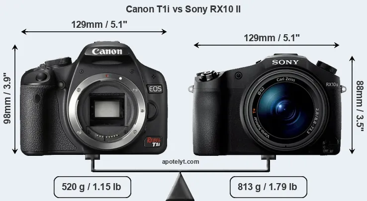 Specifications: Canon T1i vs Sony RX10 II
