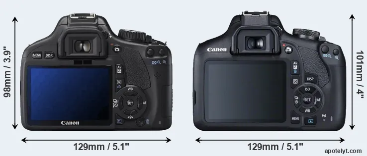 Canon T3i 133 mm 100 mm 80 mm 570 g 440 n Feb 2011 US$ 599ebay.com