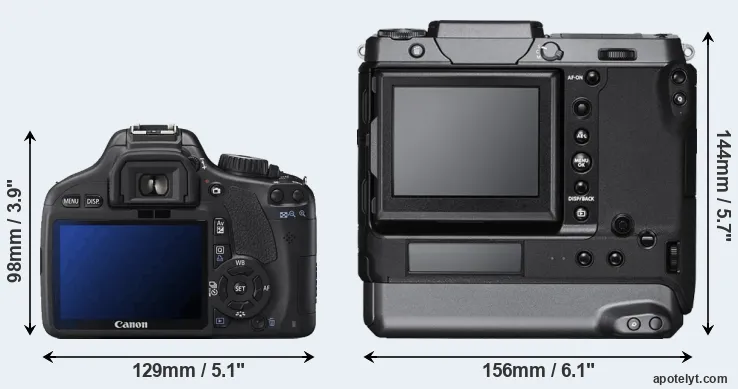| Body Specs | Canon T2i | Fujifilm GFX 100 |