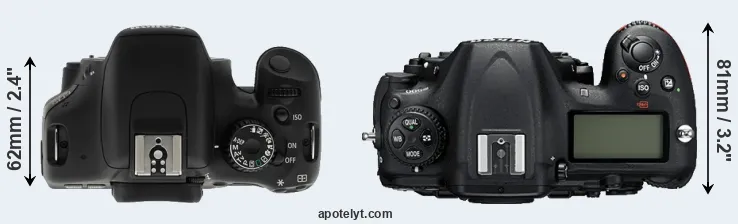 | 6. | Canon T4i | 133 mm | 100 mm | 79 mm | 575 g | 440 | n | Jun 2012 | US$ 849 | ebay.com | |