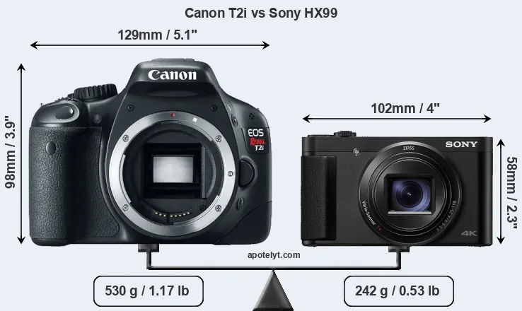Size Canon T2i vs Sony HX99