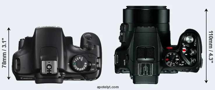 | 11. | Canon T100 | 129 mm | 102 mm | 77 mm | 436 g | 500 | n | Feb 2018 | US$ 399 | amazon.com | |