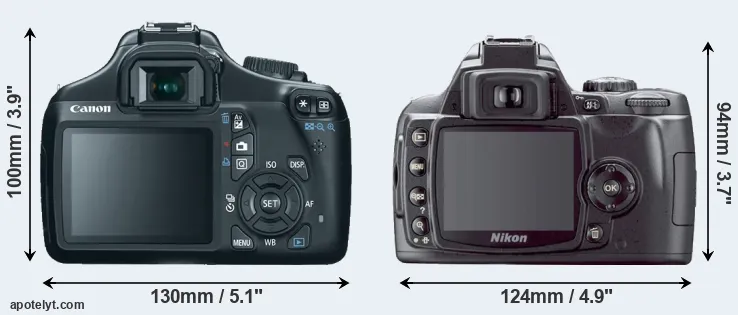 The above size and weight comparisons are to some extent incomplete since they do not consider the interchangeable lenses that both of these cameras require. Yet, since both cameras are based around an APS-C sensor, their respective lenses will tend to have similar dimensions and heft. You can compare the optics available for the two cameras in the Canon EF Lens Catalog (T3) and the Nikon Lens Catalog (D40X).