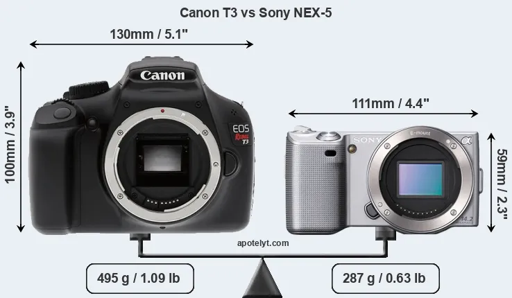 Size Canon T3 vs Sony NEX-5