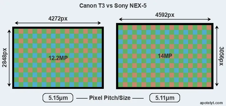 Canon T3 and Sony NEX-5 sensor measures