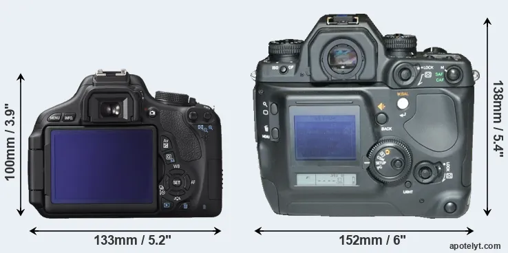 The side-by-side display below illustrates the physical size and weight of the Canon T3i and the Contax N Digital. The two cameras are presented according to their relative size. Three consecutive perspectives from the front, the top, and the back are available. All width, height and depth dimensions are rounded to the nearest millimeter.