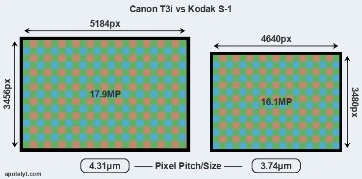 | Sensor Specs | Canon T3i | Kodak S-1 |
