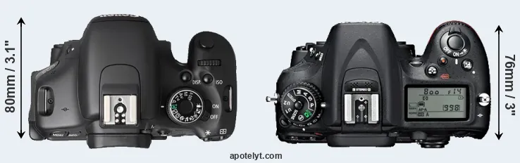 | 3. | Canon 70D | 139 mm | 104 mm | 79 mm | 755 g | 920 | Y | Jul 2013 | US$ 1 199 | ebay.com | |