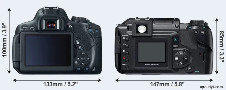 | 6. | Canon T3i | 133 mm | 100 mm | 80 mm | 570 g | 440 | n | Feb 2011 | US$ 599 | ebay.com | |