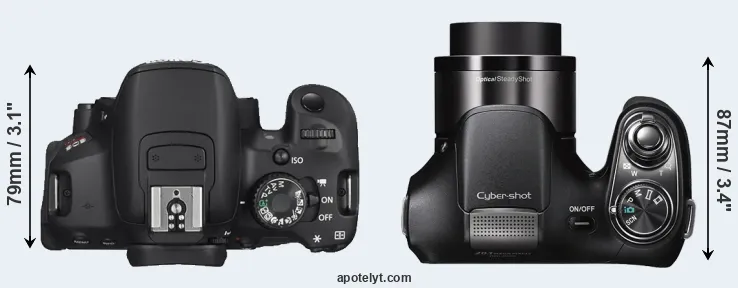 The Canon EOS Rebel T4i (called Canon 650D in some regions) and the Sony Cyber-shot DSC-H200 are two digital cameras that were announced, respectively, in June 2012 and January 2013. The T4i is a DSLR, while the H200 is a fixed lens compact. The cameras are based on an APS-C (T4i) and a 1/2.3-inch (H200) sensor. The Canon has a resolution of 17.9 megapixels, whereas the Sony provides 15.2 MP.