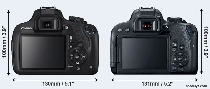 | 2. | Canon T7i | 131 mm | 100 mm | 76 mm | 532 g | 600 | n | Feb 2017 | US$ 749 | ebay.com | |