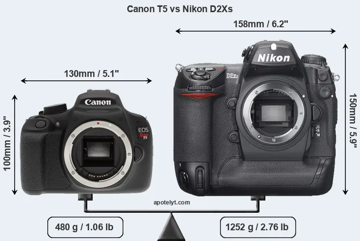 | Body Specs | Canon T5 | Nikon D2Xs |