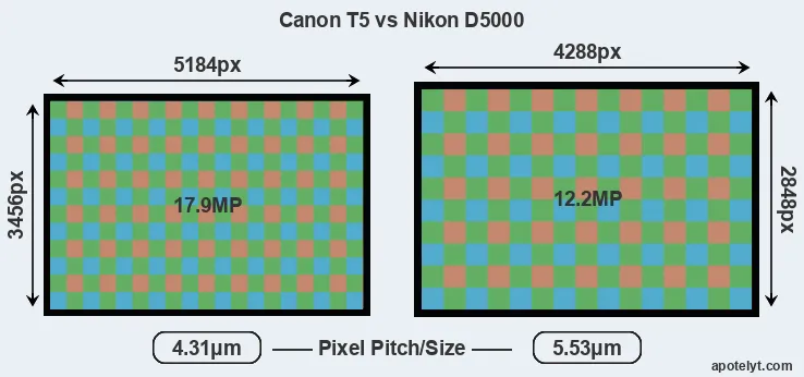 | Sensor Specs | Canon T5 | Nikon D5000 |