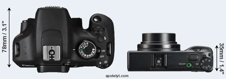 The above size and weight comparisons are to some extent incomplete and possibly misleading, as the GR IIIx has a lens built in, whereas the T5 is an interchangeable lens camera that requires a separate lens. Attaching the latter will add extra weight and bulk to the setup. You can compare the optics available for the T5 and their specifications in the Canon EF Lens Catalog.