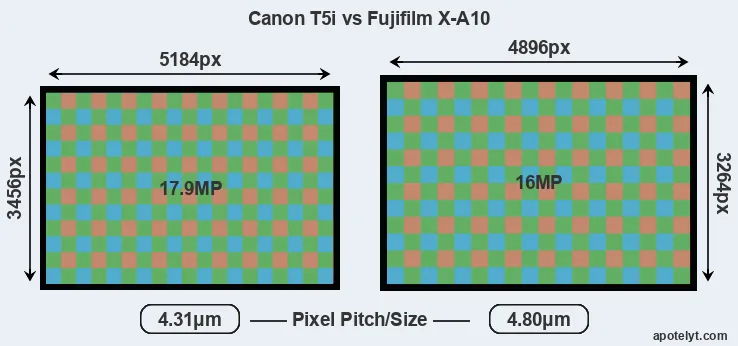 | Sensor Specs | Canon T5i | Fujifilm X-A10 |
