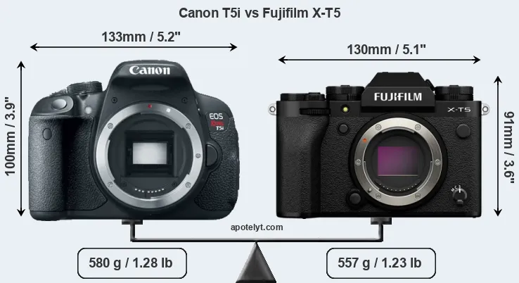 | Body Specs | Canon T5i | Fujifilm X-T5 |