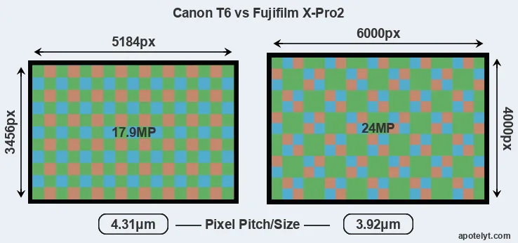 | Sensor Specs | Canon T6 | Fujifilm X-Pro2 |