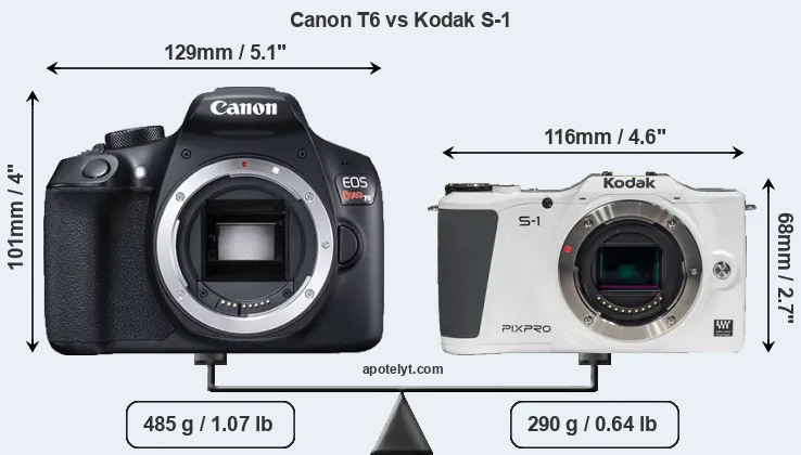 | Body Specs | Canon T6 | Kodak S-1 |