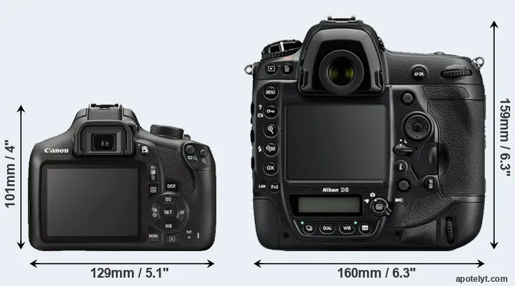 | 16. | Nikon D4S | 160 mm | 157 mm | 91 mm | 1350 g | 3020 | Y | Feb 2014 | US$ 6 499 | ebay.com | |