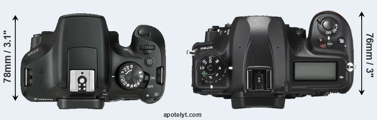 | 3. | Canon 77D | 131 mm | 100 mm | 76 mm | 540 g | 600 | n | Feb 2017 | US$ 899 | ebay.com | |
