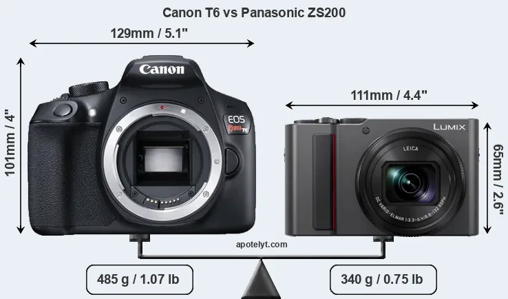 | Body Specs | Canon T6 | Panasonic ZS200 |