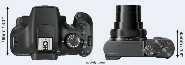 The Canon EOS Rebel T6 (called Canon 1300D in some regions) and the Panasonic Lumix DC-ZS200 (labelled Panasonic TZ200 in some countries) are two digital cameras that were revealed to the public, respectively, in March 2016 and February 2018. The T6 is a DSLR, while the ZS200 is a fixed lens compact. The cameras are based on an APS-C (T6) and an one-inch (ZS200) sensor. The Canon has a resolution of 17.9 megapixels, whereas the Panasonic provides 20 MP.