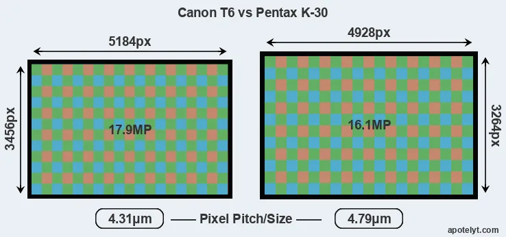 | Sensor Specs | Canon T6 | Pentax K-30 |