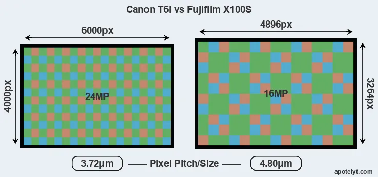 | Sensor Specs | Canon T6i | Fujifilm X100S |